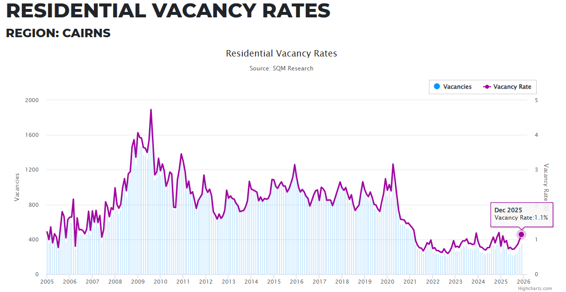 SQMリサーチによると、昨年12月のケアンズの賃貸空室率はわずか1.1%。100件の賃貸物件のうち空いているのは1.1件だけという状況です。 人口増加が続くケアンズでは、賃貸物件の需要が供給を大きく上回り、家賃も上昇を続 […]