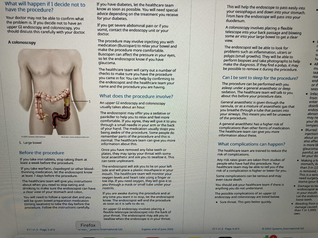 検査(GI endoscopy and Colonoscopy)に関する説明書類の一部