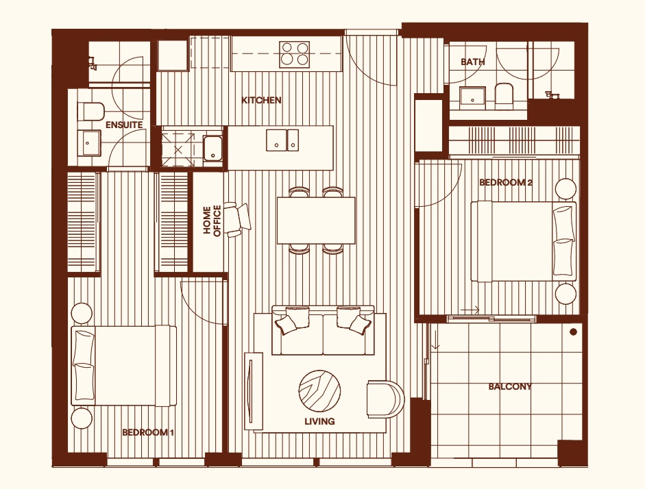 販売例 5階 2 Bed 2 Bath + Study + 1 Car 88m2 $1,218,000