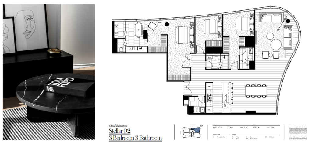94階 寝室3,浴室3,駐車2 172.4m2 $2,588,000