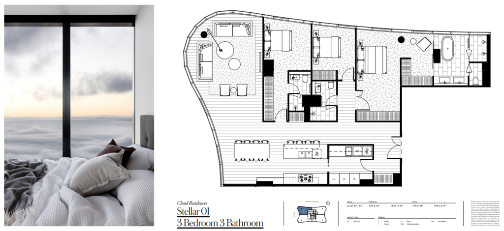 94階 寝室3,浴室3,駐車2 179.6m2 $2,890,000