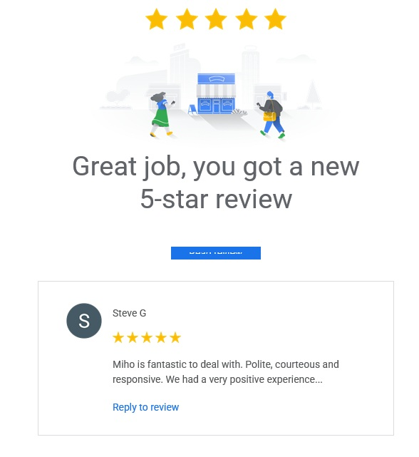 弊社でお持ちの物件の賃貸管理をさせて頂いているお客様が、弊社で販売した物件を購入され、Google頁に嬉しいレビューを残してくださいました。