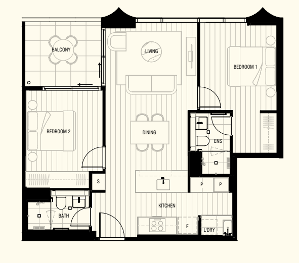 21階 2ベッド、2バス、1カーパークアパートメント 82m2 $1,437,500