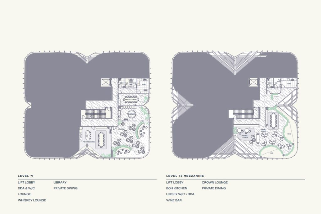 ◎71階・72階~スカイクラブ : 美しい眺望を備えたラウンジ、バー、キッチン