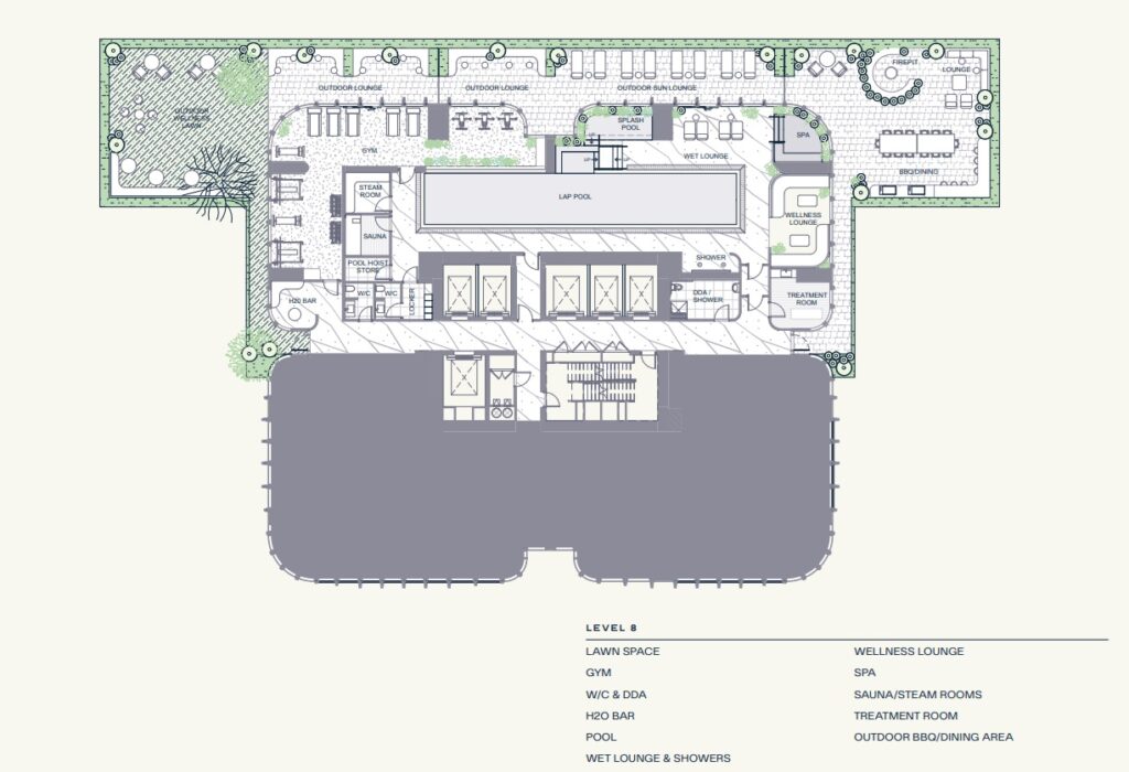 ◎8階~ウエルネスクラブ : ラッププール、スパ、サウナ、スチームルーム、ジム、サンラウンジ等